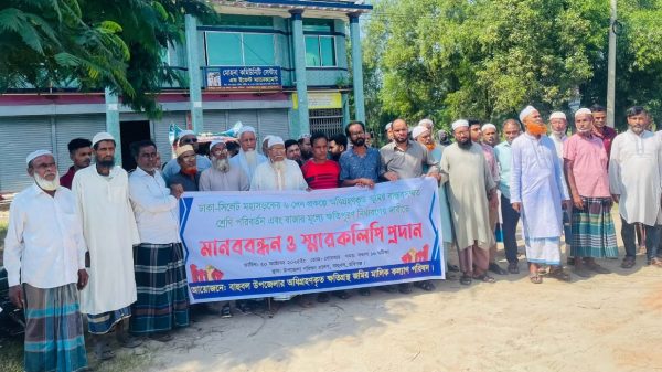 বাহুবলে মহাসড়কের অধিগ্রহণকৃত ভূমির ন্যায্যমুল্যের দাবিতে মানববন্ধন
