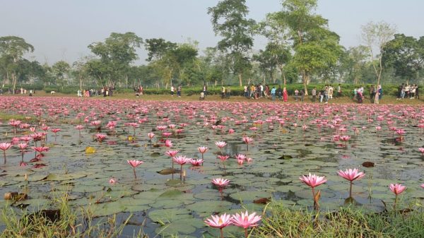 দেওন্দিতে কুয়াশার চাদরে মোড়া লাল শাপলার রূপমহল